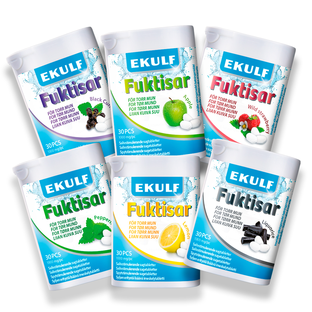 De aktiva ämnena äppelsyra, natriumcitrat, dicalciumfosfat och xylitol bevarar och bibehåller funktionellt fuktigheten i munnen. Tillsammans hjälper också ingredienserna till med att balansera pH-värdet i munnen. Som sötningsmedel används xylitol, sorbitol, isomalt och steviaglykosider. Tabletterna ger en frisk och behaglig känsla och används efter varje måltid eller vid behov. Sugtabletterna levereras i en fräsch liten ask som är liten och smidig att ha med överallt. Produkten är tillverkad i Sverige efter GMP-regler. En ask innehåller 30 tabletter.
