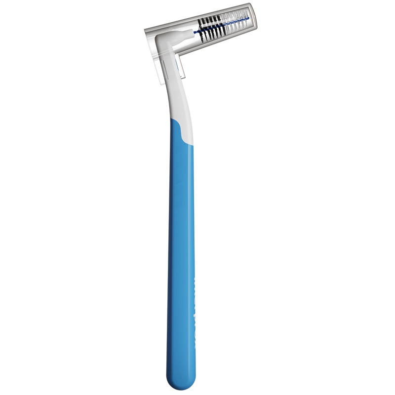 Interprox Plus är utrustad med ett vinklat borsthuvud som gör det enkelt att rengöra både från insidan och utsidan av tandraden, även längst bak i munnen. Det långa skaftet i två komponenter ger ett ergonomiskt och stabilt grepp, vilket möjliggör noggrann rengöring med god kontroll.