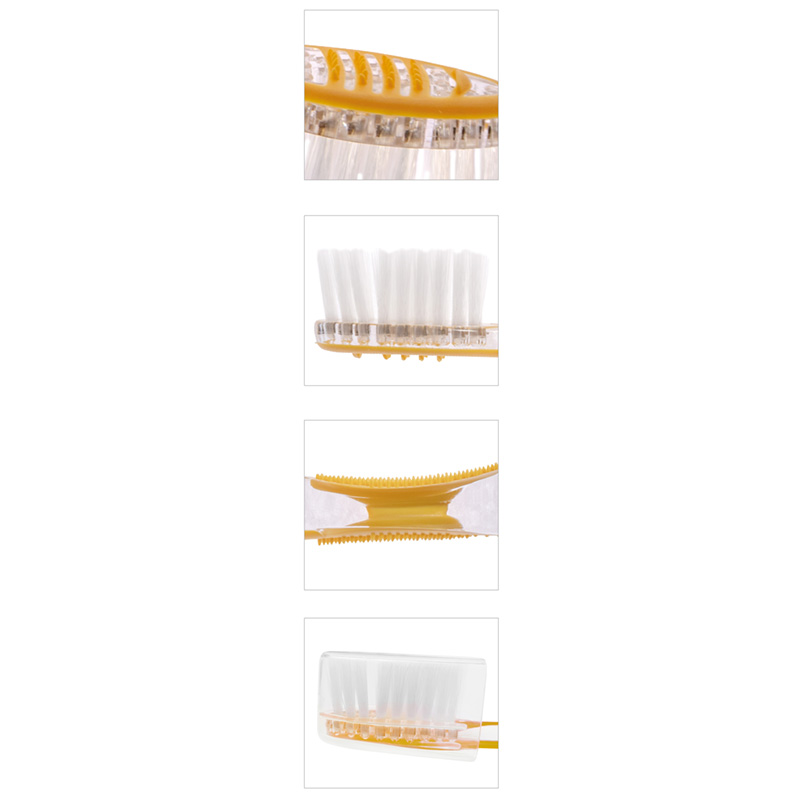 Med ett ergonomiskt handtag i gummerat material får du ett stabilt grepp, och på baksidan av borsthuvudet finns en tungskrapa som bidrar till bättre andedräkt och munhygien.